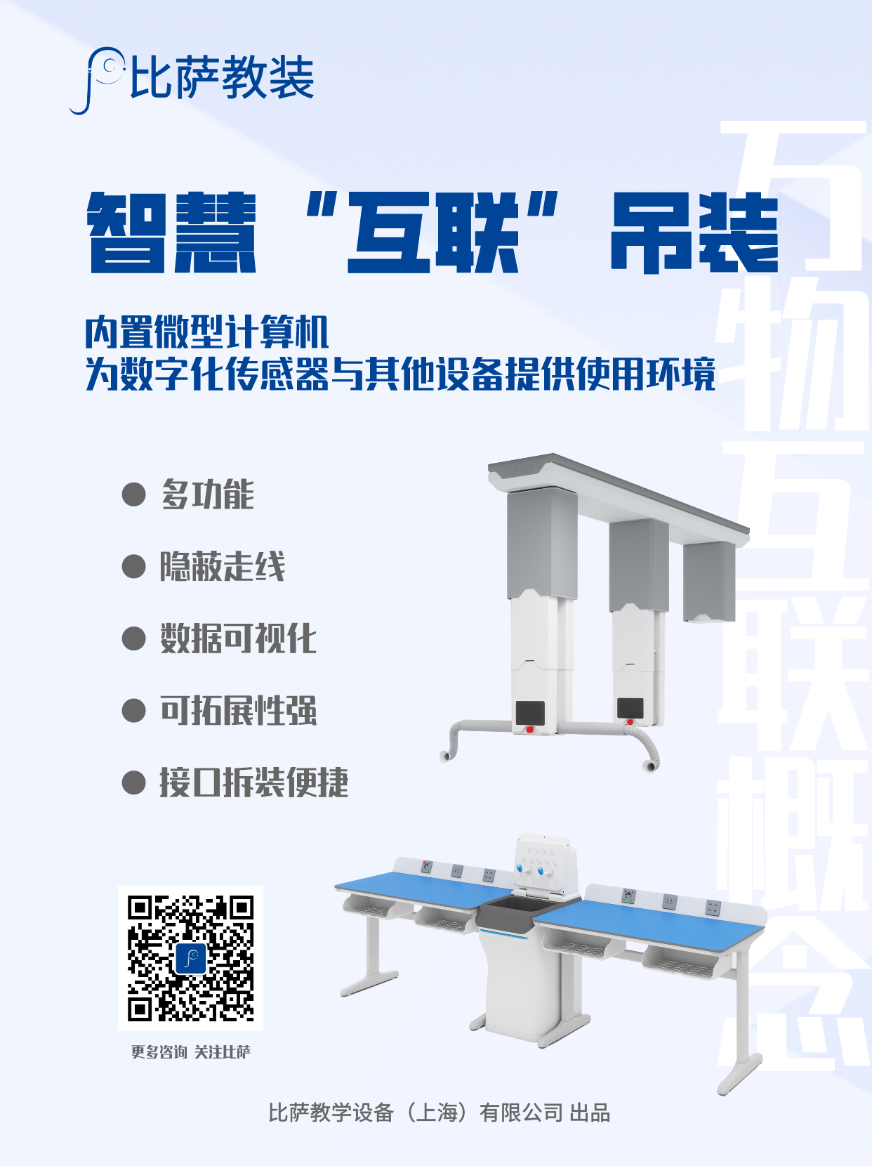 智能創(chuàng)新吊裝實驗室,是為解決當今理化生實驗室在建設和改造過程中面臨的功能升級難、地面施工難、空間單一等難題而研發(fā)的創(chuàng)新型實驗室。實驗室配備的智能吊裝系統(tǒng)是將實驗室所需水、電、光、氣、網(wǎng)絡等媒介全部基于頂部,使空間變得更加靈活,為學科教室的實驗應用提供了最高程度的靈活性,能滿足實驗室簡潔美觀、安全環(huán)保、功能完備的特點和需求,更便于改造和檢修。